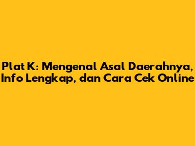 Buat kalian yang sering lihat kendaraan dengan plat nomor K di jalan, pasti penasaran kan, plat K itu sebenarnya dari daerah mana sih? Nah, daripada terus bertanya-tanya, yuk kita bahas tuntas tentang plat nomor K ini! Mulai dari daerah asalnya, informasi lengkapnya, sampai cara cek online-nya. Jadi, simak baik-baik ya!