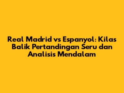 - Bagaimana cara mendapatkan informasi terbaru tentang pertandingan Real Madrid vs Espanyol? Pantau terus berita olahraga terbaru di media online, televisi, atau media sosial.