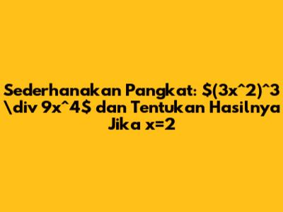 Sederhanakan Pangkat: $(3x^2)^3 \div 9x^4$ (x=2)