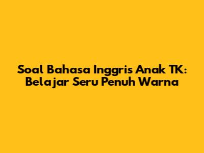Soal Bahasa Inggris Anak TK: Belajar Seru Penuh Warna