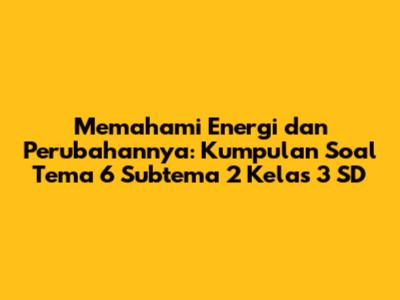 Halo teman-teman pelajar kelas 3 SD! Gimana kabarnya hari ini? Semoga selalu semangat belajar, ya! Kali ini, kita akan menyelami dunia energi yang seru banget, lho. Topik kita kali ini adalah Tema 6 tentang Energi dan Perubahannya, lebih spesifiknya lagi di Subtema 2. Kalian pasti penasaran kan, ada materi apa aja sih di subtema ini? Nah, di artikel ini, kita bakal bahas tuntas semua yang perlu kalian ketahui, plus ada kumpulan soal Tema 6 Subtema 2 Kelas 3 SD yang siap bikin kalian makin jago! Jadi, siapkan catatan kalian, dan mari kita mulai petualangan belajar kita!