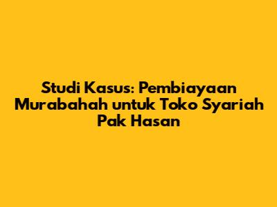 Guys, kali ini kita akan membahas sebuah studi kasus menarik tentang Pak Hasan, seorang pengusaha yang ingin membuka toko makanan ringan syariah. Pak Hasan ini punya visi yang keren, yaitu fokus pada produk-produk lokal yang halal dan berkualitas. Modal awal yang dimilikinya sebesar Rp80 juta. Nah, Pak Hasan ini lagi mempertimbangkan beberapa opsi untuk memulai bisnisnya, salah satunya adalah pembiayaan Murabahah dari bank syariah. Pembiayaan Murabahah ini merupakan salah satu produk perbankan syariah yang cukup populer, di mana bank akan membelikan barang yang dibutuhkan nasabah, kemudian menjualnya kembali kepada nasabah dengan harga yang lebih tinggi (ada margin keuntungan). Jadi, sederhananya, ini seperti jual-beli dengan sistem mark-up. Dalam konteks Pak Hasan ini, beliau ingin menggunakan pembiayaan Murabahah untuk memenuhi kebutuhan modal kerjanya, seperti membeli bahan baku, peralatan, dan lain-lain.
