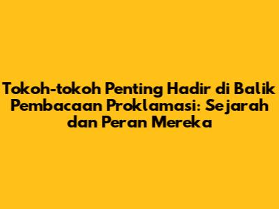 Selain Soekarno dan Mohammad Hatta, ada banyak tokoh lain yang hadir dan menyaksikan pembacaan proklamasi. Mereka semua adalah saksi sejarah yang turut mendukung dan memperjuangkan kemerdekaan Indonesia. Kehadiran mereka menunjukkan bahwa proklamasi adalah hasil perjuangan bersama, bukan hanya perjuangan segelintir orang.