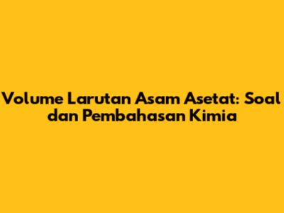 Volume Larutan Asam Asetat: Soal Dan Pembahasan Kimia