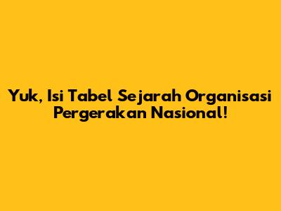 Hai, teman-teman! Kali ini, kita akan seru-seruan belajar tentang sejarah organisasi pergerakan nasional di Indonesia. Pasti pada penasaran, kan, kenapa organisasi-organisasi ini penting banget dalam sejarah kita? Nah, biar makin paham, kita akan mengisi sebuah tabel yang isinya tentang organisasi-organisasi tersebut. Siap-siap, ya! Kita akan bahas mulai dari Budi Utomo, Indische Partij, hingga Sarekat Islam. Kita juga akan menelusuri tokoh-tokoh penting di baliknya, tanggal berdirinya, sejarah perjuangan mereka, tujuan mereka, dan bentuk perjuangan yang mereka lakukan. Seru, kan? Mari kita mulai petualangan sejarah kita!